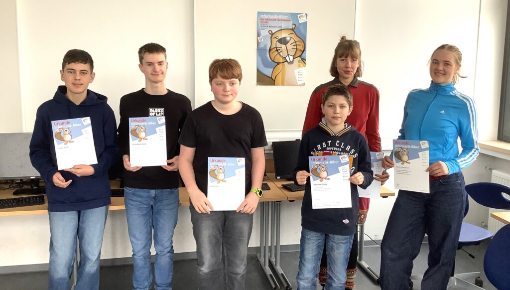 217 Schüler*innen aus den Forscherklassen und Informatikkursen unserer Schule haben im Schuljahr 25/26 am Biber-Wettbewerb teilgenommen. Vier Schüler haben einen 1. Preis und zehn Schüler*innen haben einen 2. Preis erzielt.