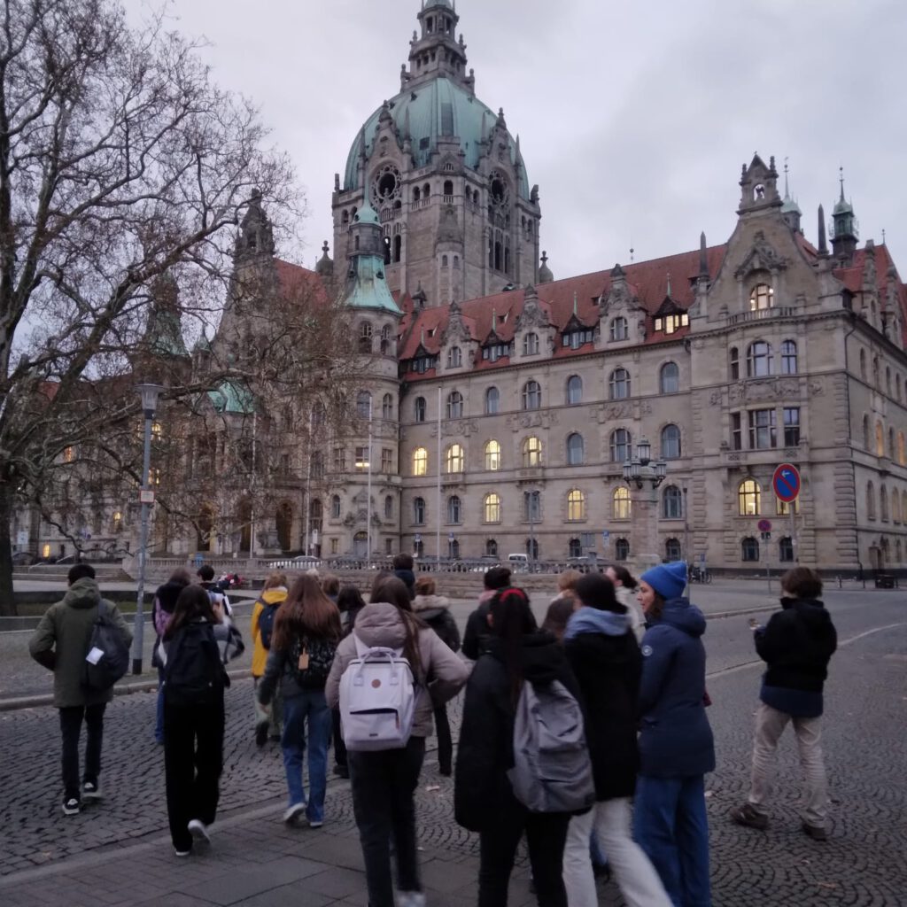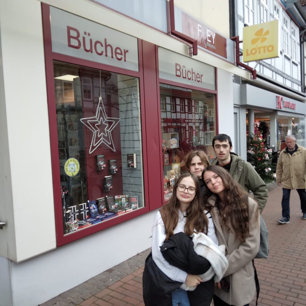 Insbesondere in der vorweihnachtlichen Zeit ist Deutschland mit seinen Weihnachtsmärkten, Kinderpunsch und beleuchteten Altstädten reizvoll – das wissen auch unsere amis domfrontais, unsere französischen Freunde aus Domfront/Normandie… ;D Anfang Dezember haben wir 10 französische Schülerinnen und Schüler der 9. Klasse bei uns empfangen. Gemeinsam mit ihren Lehrern Monsieur Martin und Madame Madeline und den deutschen Partnern haben wir in der Tat die vorweihnachtliche Zeit intensiv erlebt: auf dem Weihnachtsmarkt in Hannover, in der wunderschön geschmückten Altstadt Goslars; und auch in Wolfsburg, bei dessen Besuch natürlich auch die Autostadt auf dem Programm stand. Der Wettergott war uns hold: im Harz konnten wir bei sonnigem Winterwetter wandernd die Natur erleben.