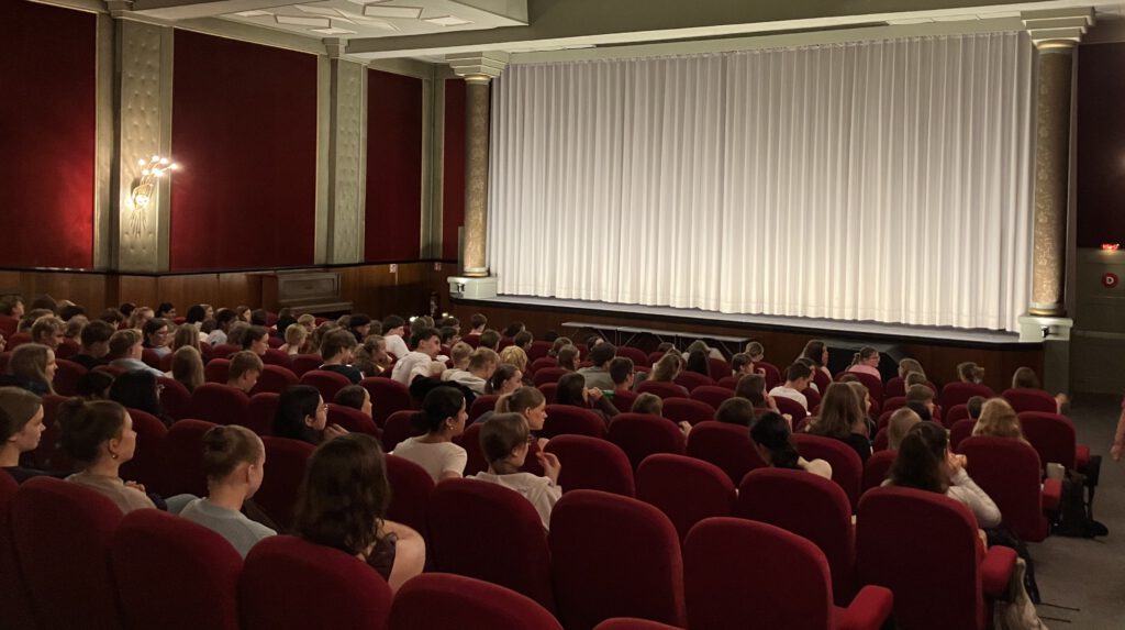 Mehr als 200 Schüler*innen und sechs Französischlehrer*innen machten sich auf den Weg in die Neue Schauburg. Der Betreiber Herr Lindemann stellte sich auf unsere Wünsche ein und besorgte für uns den gewünschten Film in französischer Originalversion mit deutschen Untertiteln. Danke dafür!