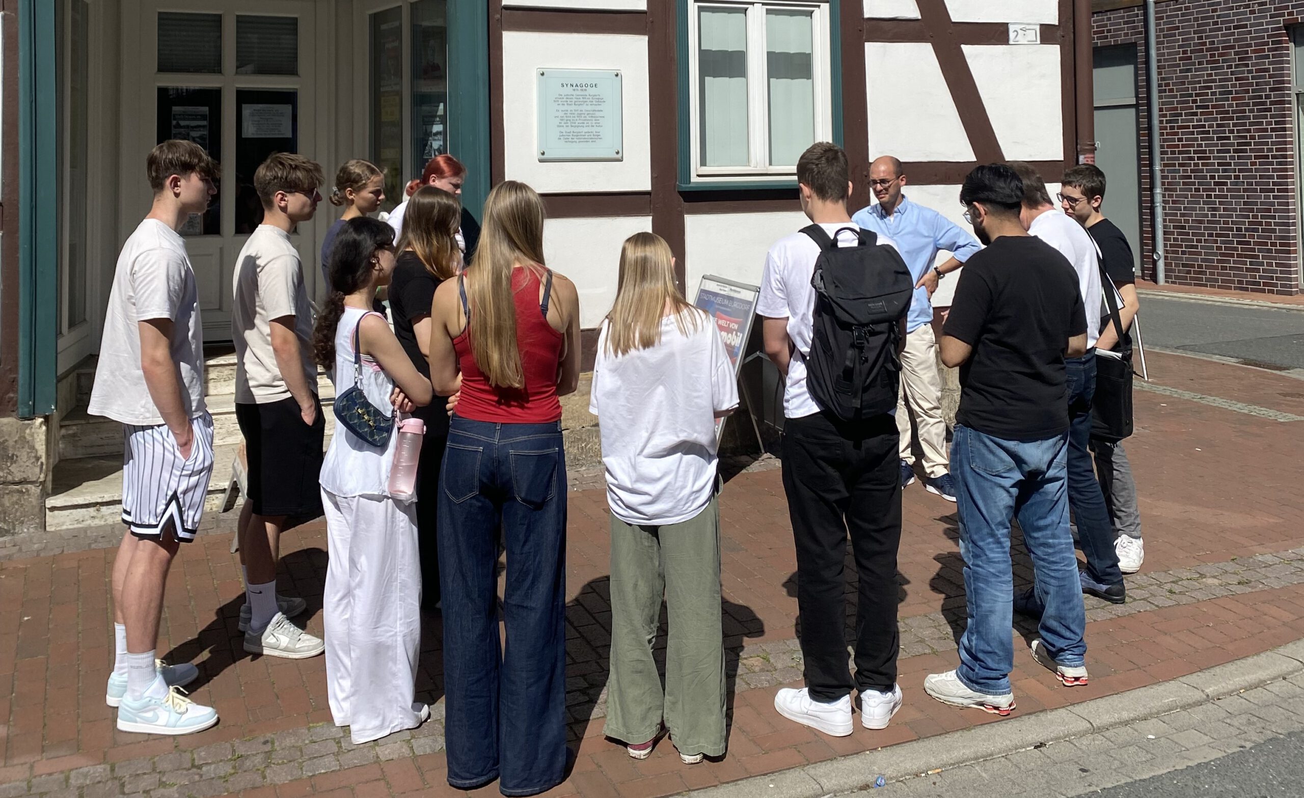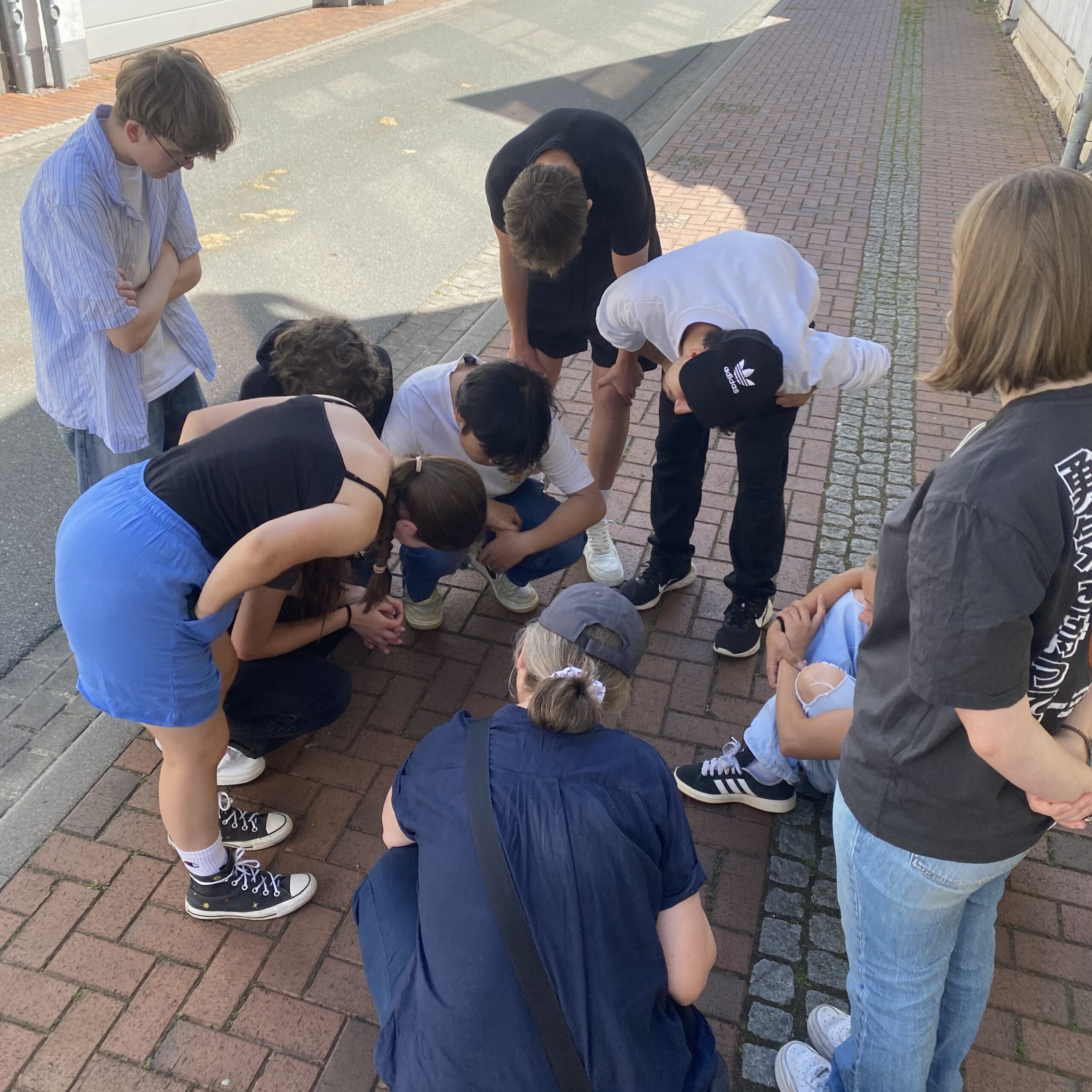 In der letzten Unterrichtswoche vor den Ferien unternahm die 10e einen Stolpersteinspaziergang mit ihrem Geschichtslehrer Herrn Rode und ihrem Politiklehrer Herrn Mäckel durch die Innenstadt Burgdorfs.