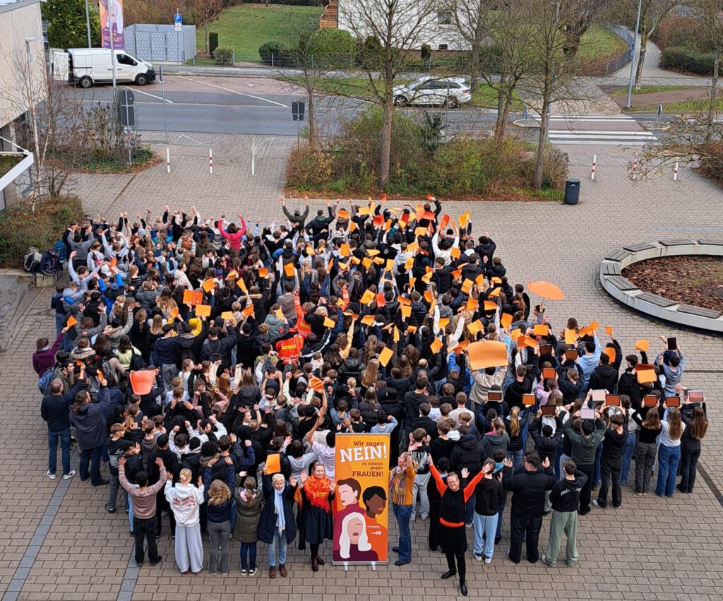 Auch am GymBu haben sich am 05.12.25 zahlreiche SchülerInnen und KollegInnen auf dem Schulhof versammelt, um sich klar gegen Gewalt zu positionieren! Ein starkes und solidarisches Zeichen!