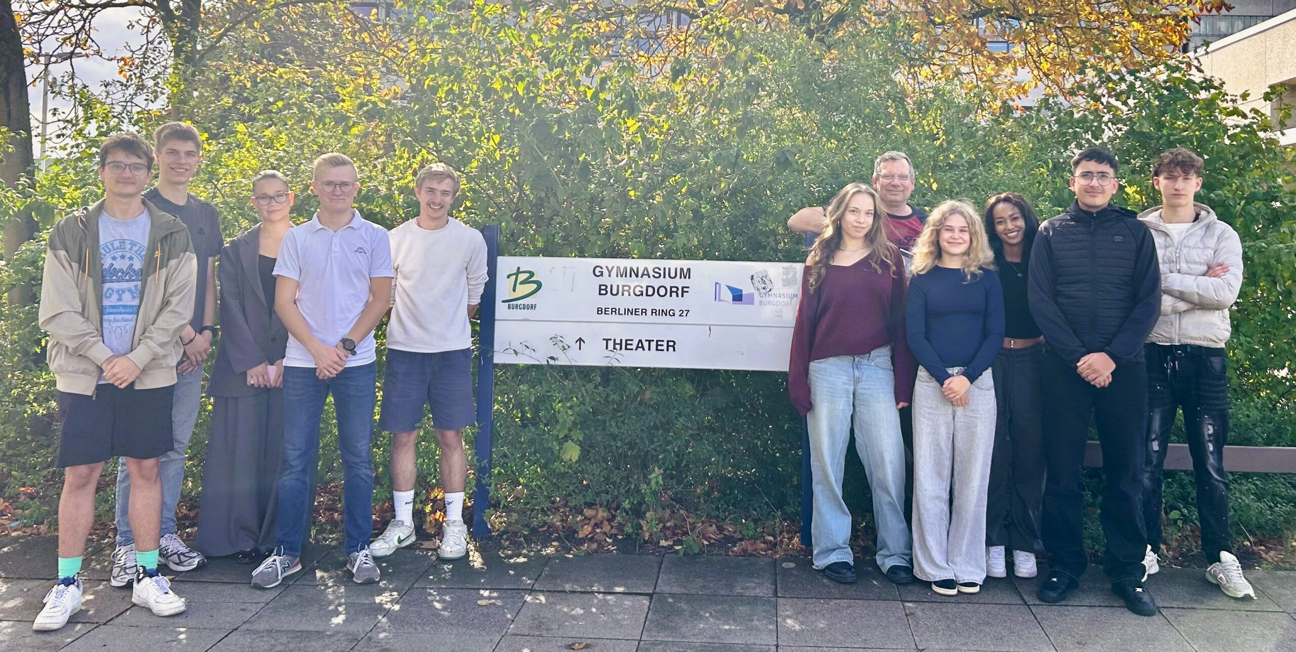 Unsere „SV“ von links nach rechts – Til Strutz, Fynn Stüber, Sofia Schweizer, Bennit Hinkelmann, Lukas Peycke, Lilien Stoye, (Herr Daneke), Lara Brandes, Chiara Harms, Delian Cengil, Henri Doll